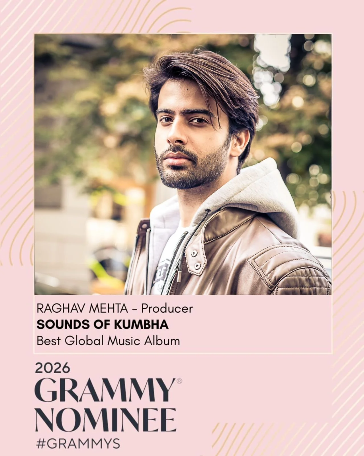 In 2025, Raghav received a GRAMMY nomination for Best Global Music Album for his work as a producer on Sounds of Kumbha; a monumental collaboration produced in partnership with the Government of Uttar Pradesh, Network18, HistoryTV18, and Universal Music Group. The project united over fifty international artists, including former Grammy winners and nominees, to reinterpret the spirit of India’s sacred Kumbh Mela through music.